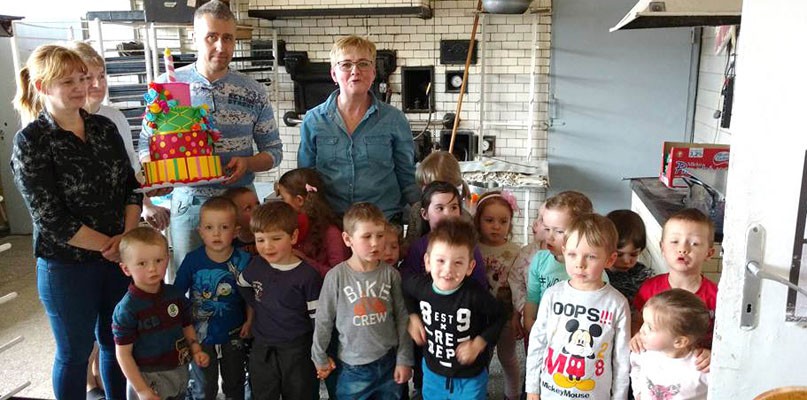 W czwartek, 20 kwietnia 2017 r. grupa popołudniowa Słoneczek z Samorządowego Przedszkola nr 2 udała się do Cukierni Państwa Marii i Piotra Leszczyńskich. W rodzinnej atmosferze dzieci razem z córką właścicieli cukierni Lenką, poznawały ciekawą pracę cukiernika. Poznały pomieszczenie oraz różne urządzenia służące do produkcji ciast i ciasteczek. Największą radością dla dzieci była możliwość samodzielnego wykonania ciastek. Dzieci przystąpiły do wałkowania, wyrabiania, kulania i formowania ciasteczek podśpiewując pałuckie piosenki. Chętnie pomagały w układaniu gotowych ciastek na blachy i przyglądały się w jaki sposób wędrują do rozgrzanego pieca. Nad wszystkim pieczę sprawowała pani Kasia, która chętnie służyła radą i pomocą. W czasie, kiedy dzieci z niecierpliwością czekały na własne wypieki, mogły w tym czasie dalej naśladować niełatwą pracę cukiernika.