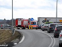 Kolizja samochodu ciężarowego z busem w Zamościu