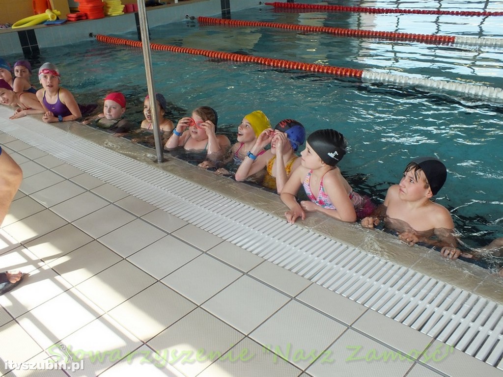 Za nami pierwsze zajęcia nauki i doskonalenia pływania w ramach projektu pn. "Akademia pływania" zorganizowanego przez Stowarzyszenie "Nasz Zamość" a dofinansowane z Gminy Szubin. Na zajęcia stawiła się w pełnym składzie 18-nastoosobowa grupa dzieci. w zajęciach uczestniczą dzieci z Zamościa, Rynarzewa i Kołaczkowa. Po sprawdzeniu obecności, przekazaniu kilku uwag rodzicom, dzieci wsiadły do wynajętego busa i wyruszyły na zajęcia na basenie "Bryza" do Bydgoszczy.