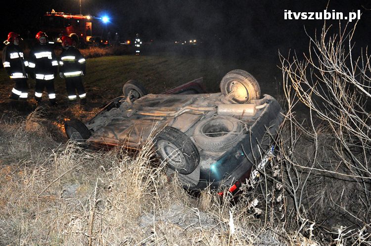 27 stycznia 2012 r. po godz. 21.00 doszło do zdarzenia drogowego przy ul. Zaleskiej w Królikowie. Kierująca samochodem Citroen Saxo, z niewyjaśnionych przyczyn zjechała z drogi i dachowała. Na miejsce zadysponowano dwa zastępu z PSP Jednostki Ratowniczo-Gaśniczej nr 2 w Szubinie, OSP Królikowo, Pogotowie Ratunkowe z Szubina i Kcyni, patrol policji. Poszkodowana o własnych siłach opuściła samochód. Na miejscu została opatrzona i przewieziona do szubińskiego szpitala na dalsze badania. Ruch na drodze powiatowej odbywał się wahadłowo. Przyczyny i okoliczności zdarzenia wyjaśniają policjanci z Komisariatu Policji w Szubinie. . .