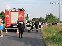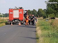 28 lipca 2014 r. przed godziną 13.00 w miejscowości Łachowo droga krajowa nr 5 doszło do kolizji drogowej samochodu osobowego z Tirem. Na miejsce zdarzenia wezwano karetkę pogotowia, dwa zastępy z Jednostki Ratowniczo-Gaśniczej nr 2 w Szubinie oraz patrole policji z KP Szubin. Do zdarzenia doszło na prostym odcinku drogi krajowej, kierujący VW Pasatem jadąc w stronę Bydgoszczy z niewyjaśnionych przyczyn zjechał na przeciwległy pas ruchu uderzając w bok ciągnika siodłowego jadącego w przeciwnym kierunku. W wyniku bocznego zderzenia Tir zjechał do przeciwległego rowu, na szczęście między drzewa, natomiast osobówka zatrzymała się prostopadle do obrysu jezdni na przeciwległym pasie. Zespół pogotowia przebadał pasażerkę osobówki, jednak nie wymagała ona dalszej hospitalizacji. Na czas działania służb ratunkowych droga krajowa była całkowicie zablokowana. Później wprowadzono ruch wahadłowy do czasu usunięcia samochodów z drogi. Kierujący VW Pasatem za spowodowanie kolizji drogowej został ukarany mandatem karnym. Ten odcinek drogi krajowej nr 5 należy do bardziej niebezpiecznych w Gminie Szubin, przypomnijmy, że 3 tygodnie temu również w poniedziałek, nieopodal zginął rowerzysta >>>>, a rok temu w wyniku odniesionych obrażeń zmarł młody kierowca Iveco Daily >>>>.