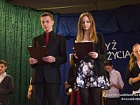 Poezjo przebudź się wiosną, Świeżą, kwitnącą, radosną, Opowiedz nam wiersz! 14 kwietnia 2014 r. w bibliotece szkolnej w Kowalewie panowała wiosenna atmosfera. Po raz drugi odbył się Konkurs Recytatorski pod hasłem ?Wiosenne Przebudzenie?. Uczestniczyli w nim uczniowie, którzy zaprezentowali wiersze o tematyce wiosennej. Zwyciężczynią została Kinga Pietrykowska uczennica klasy II szkoły podstawowej, która recytowała wiersz Wandy Grodzieńskiej O ślimaku co szukał wiosny. II miejsce zajęła Aleksandra Prybińska- uczennica klasy III. Z kolei III miejsce zdobyła Michalina Kuźniak ? uczennica klasy IV. Wyróżnienia przyznano następującym uczestnikom: Oliwia Niespodziana, Marta Knap, Dominika Witosławska, Julia Piątek i Martyna Piątek. Na koniec pani bibliotekarka wręczyła uczniom pamiątkowe dyplomy i nagrody.