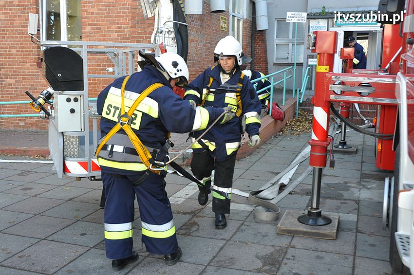 28 października 2014 r. około godz. 12.00 na stanowisko dowodzenia PSP w Nakle nad Notecią wpłynęło zgłoszenie o pożarze w szubińskim szpitalu. Ze wstępnych ustaleń wynikało, że zadymienie pojawił się w dolnych częściach budynku oraz na ostatniej kondygnacji. Natychmiast na miejsce zadysponowano z Jednostki Ratowniczo-Gaśniczej nr 2 w Szubinie dwa wozy bojowe oraz podnośnik hydrauliczny. Do pomocy strażakom z PSP wezwano również ochotników z OSP Szubin i OSP Rynarzewo, druhowie z OSP Królikowo zabezpieczali rejon działania siedzibie szubińskiej jednostki. Działania strażaków na miejscu zdarzenia polegały na dotarciu do osoby poszkodowanej w pomieszczeniach piwnicznych z użyciem aparatów powietrznych. Podczas działań, strażacy otrzymali informacji o kolejnym poszkodowanym, znajdującym się na klatce schodowej, który miał otwarte złamanie nogi. Do trzeciego poszkodowanego znajdującego się na ostatnim piętrze budynku, ratownicy dotarli przy użyciu podnośnika hydraulicznego. Na szczęście działania strażaków na terenie szubińskiego szpitala miały charakter ćwiczebny. Realizacji działań ze strony Państwowej Straży Pożarnej przyglądali się st. bryg. Franciszek Sobiechowski - zastępca komendanta powiatowego PSP w Nakle nad Notecią oraz mł. bryg. Mariusz Mantych - dowódca JRG nr 2 w Szubinie wraz ze swoim zastępcą asp. sztab. Jerzym Bejmowiczem. Na zakończenie ćwiczeń, dowódcy omówili działania oraz przekazali strażakom swoje uwagi.