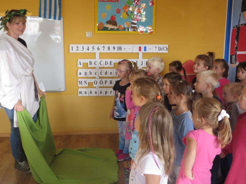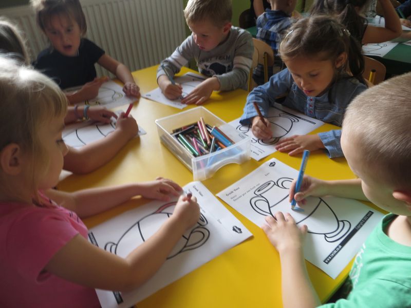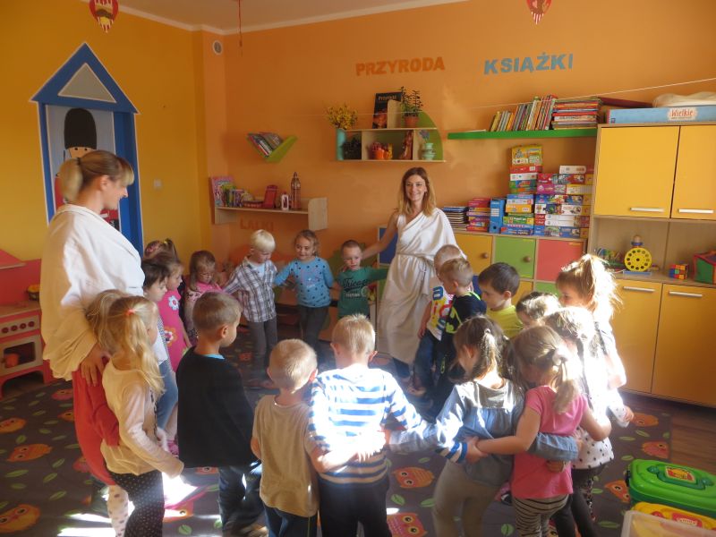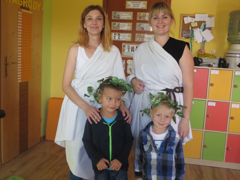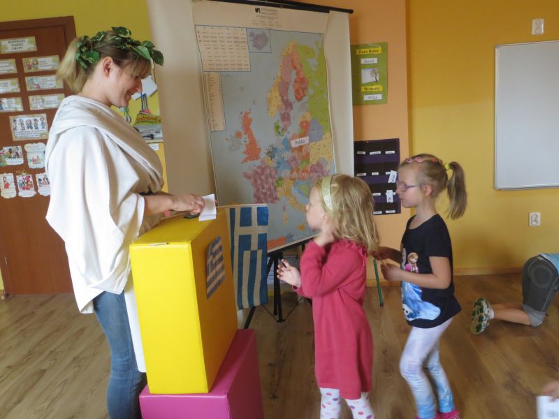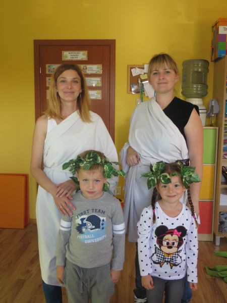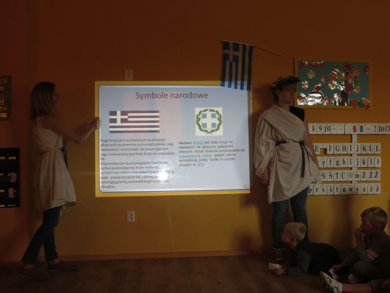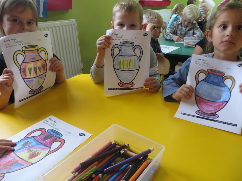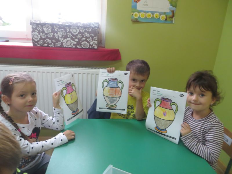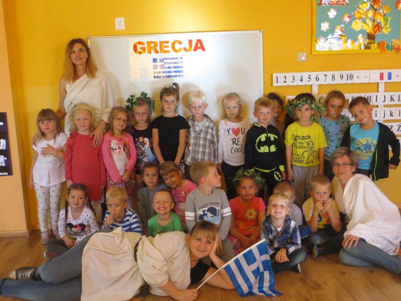 28 września 2015 r. "Pszczółki" z Przedszkola Niepublicznego "Słoneczko" w Szubinie miały okazję zwiedzić "palcem po mapie" słoneczną Grecję. Podczas tej podróży mieliśmy okazję dowiedzieć się wielu ciekawych rzeczy o tym pełnym historii kraju. Poznaliśmy najciekawsze zabytki i wyspy. Wiemy, że stolicą Grecji są Ateny. Mieliśmy okazję skosztować greckiej kuchni, która nie wszystkim przypadła do gustu. Braliśmy udział w olimpiadzie sportowej na Olimpie. Konkurencje były niełatwe, zwycięzcy zostali nagrodzeni wieńcem laurowym. Tańczyliśmy też grecki taniec, tj. "Zorba". Na koniec dekorowaliśmy antyczne wazy. To była niesamowita przygoda, którą będziemy długo wspominać.