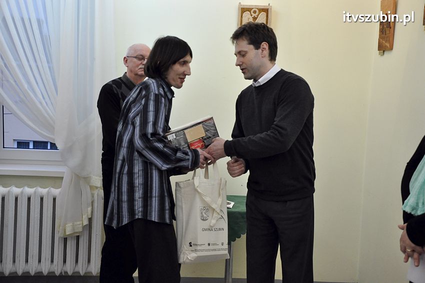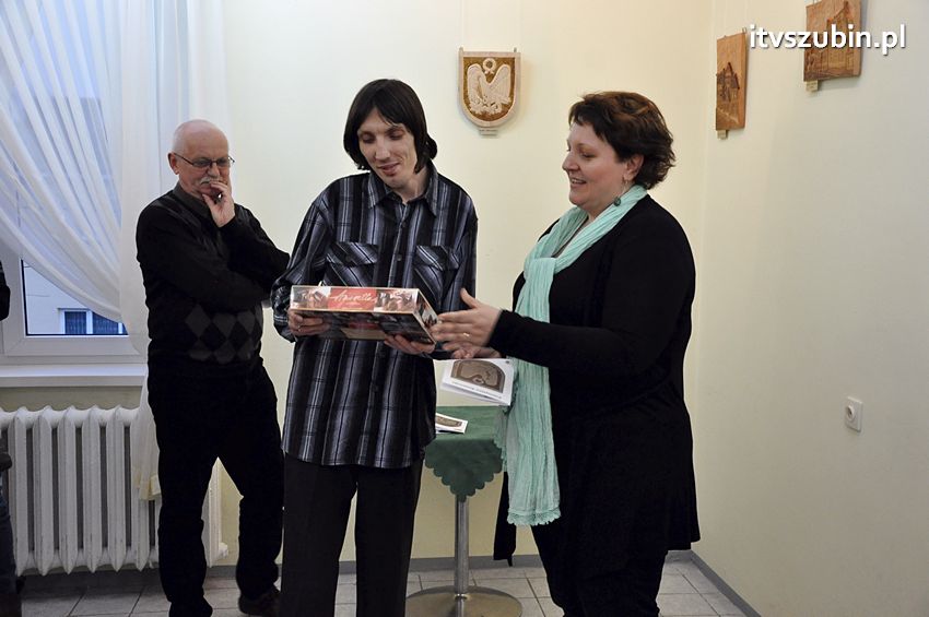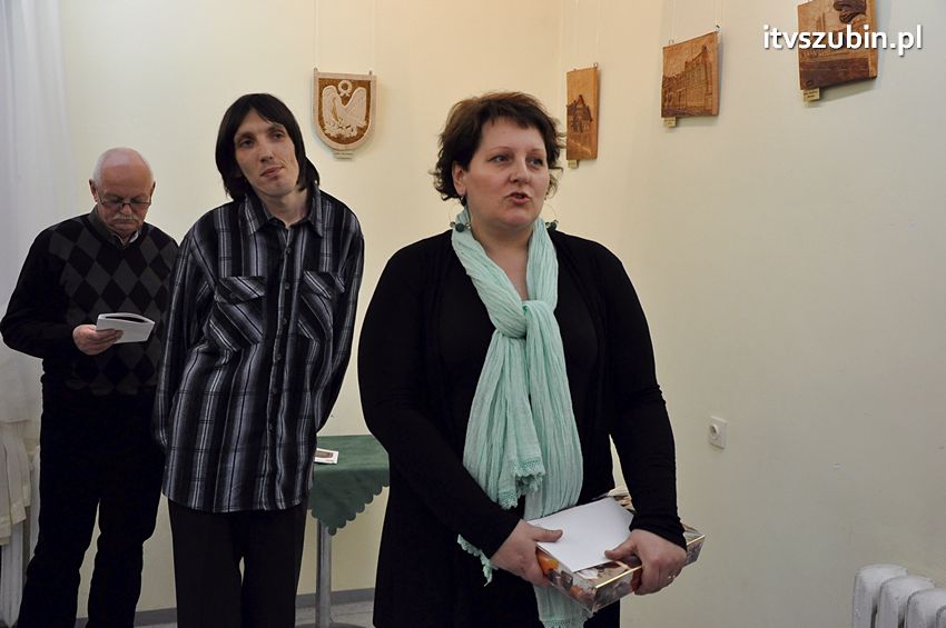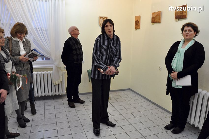 21 marca 2014 r. w Galerii Plama's mieszczącej się w Szubińskim Domu Kultury odbył się wernisaż Przemysława Kozłowskiego z Grzecznej Panny. Tematem przewodnim był Szubin - miasto jakie znam. Wszystkie prace zostały wykonane w drewnie, pierwsza z nich powstała w 2012 roku podczas pleneru malarskiego i była to płaskorzeźba Kościoła pw. Św Marcina Bpa. w Szubinie. Przygodę z rzeźbą Przemek rozpoczął w 2008 r. uczęszczając do Szubińskiego Domu Kultury na zajęcia rzeźbiarskie prowadzone przez Zbyszko Piwońskiego. Na piątkowy wernisaż przybyli przyjaciele, znajomi i rodzina artysty, których przywitała Dyrektor SDK, Alina Gordon. Kilka słów oraz podziękowania popłynęło z ust Przemka, który w szczególności podziękował za wsparcie i pomoc swojej żonie Magdzie oraz Panu Zbyszko Piwońskiemu. Od bardzo wielu osób artysta usłyszał słowa uznania i podziwu za tak profesjonalnie wykonane prace. Nasza redakcja przyłącza się to wszystkich życzeń równocześni życząc wytrwałości w działaniu i kolejnych sukcesów w pracy artystycznej.