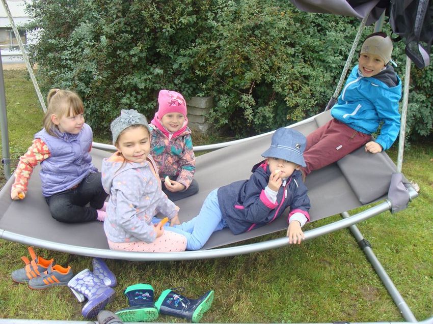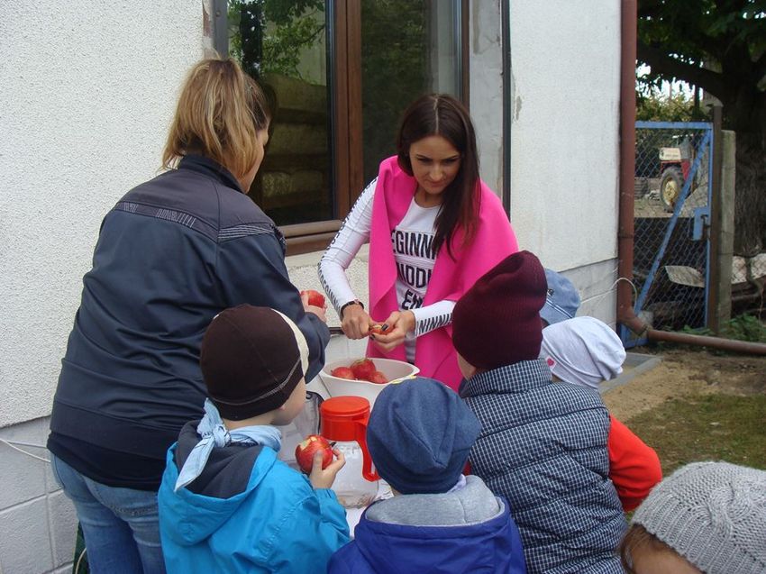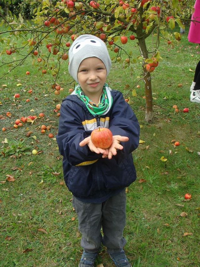 28 września 2015 r. ?Zuchy?z Niepublicznego Przedszkola ?Słoneczko? z Szubina po raz kolejny, dzięki gościnności pani Pauliny Marchlewskiej wybrały się do sadu świętując ?Dzień Pieczonego Ziemniaka?. Podczas wizyty w sadzie zbieraliśmy jabłka do skrzyń, które wykorzystaliśmy później do zrobienia pysznych soków. Nie zabrakło również różnego rodzaju zabaw np. pokonywania toru przeszkód, zabaw z piłkami, wspinania po drabince. Kolejną atrakcją było skosztowanie pieczonego ziemniaka. Dużo radości sprawiła nam piękna jesienna pogoda, mogliśmy bez przeszkód wspólnie świętować ten dzień na świeżym powietrzu. Pełni wrażeń wróciliśmy do przedszkola ze skrzynią darów.
